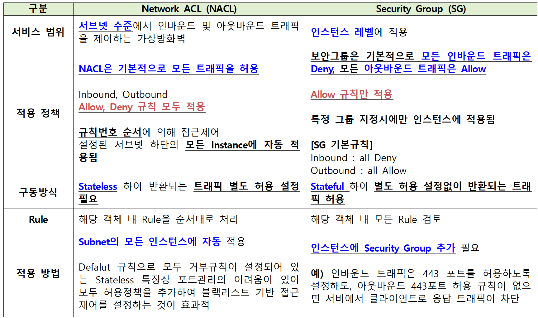 AWS의 보안그룹(SG)와 NACL의 차이점